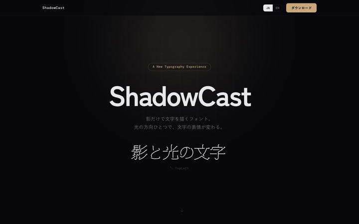 文字に影を落とす、ユニークな日本語フォント。