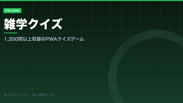 【個人開発】1,200問以上収録のPWA雑学クイズゲーム「雑学クイズ」を作りました。このツールをすぐ使いたい方はこちら 雑学クイズで遊ぶ → はじめに — なぜ雑学クイズを作ったのか 雑学クイズとは 主な機能紹介 遊び方ガイド スコアリングシステム 技術的なこだわり 今後のアップデート予定 ...