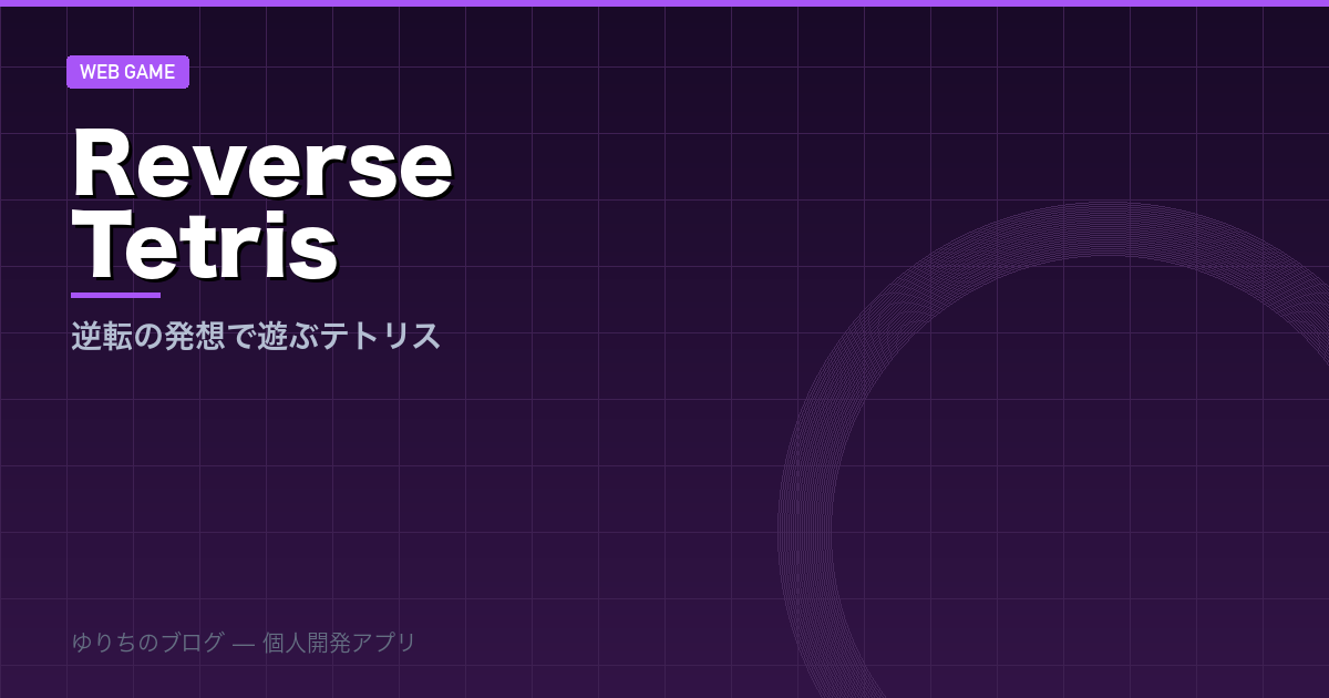 Reverse Tetris(逆テトリス)は、テトリスの「消す」を「積む」に逆転させたブラウザゲームです。改めてポイントをまとめます。